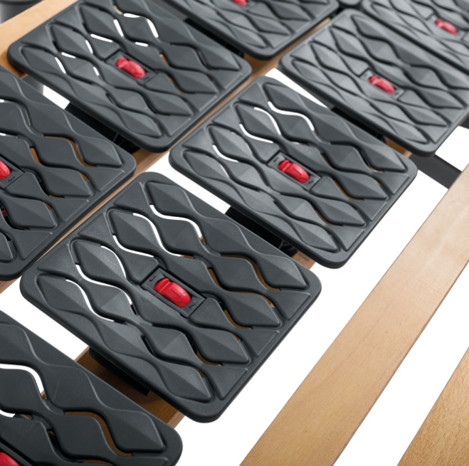 An ergonomic frame for twin, queen or full size mattresses with a steel structure and wood slats, Fluttua 200 is divided into three sections to offer increased comfort. The head and feet can easily be raised to improve circulation. The chest and head can also be lifted manually to 5 different positions.