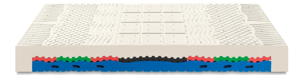 The central 7-zone eco-friendly foam with channels improves ventilation and moisture management.