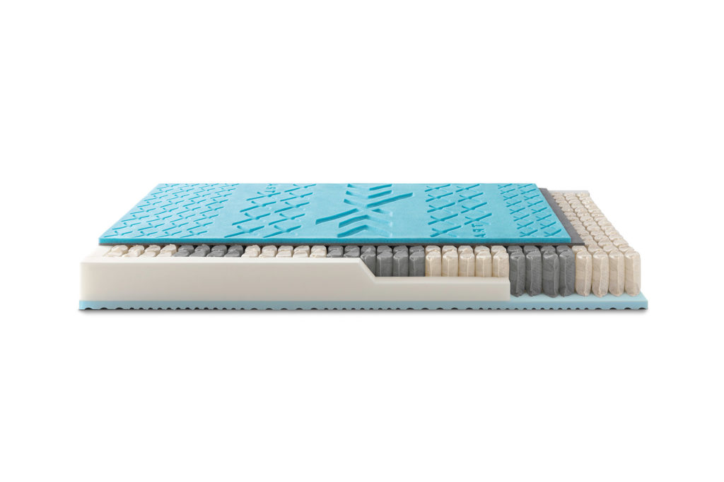 The Xtra-Tech mattress features a structure with 1,000 independent springs, Super Firm support, and 7 differentiated support zones for balanced support that promotes optimal body weight distribution. The cover is washable at 60°C on a delicate cycle. Xtra-Tech is a Class 1 Medical Device mattress.