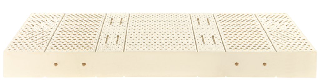 Biostyle is made of pure latex foam with a 7-zone structure, obtained through a high-temperature vulcanisation process. The result is an ergonomic and resistant slab, with calibrated density to offer balanced and targeted support to different areas of the body.