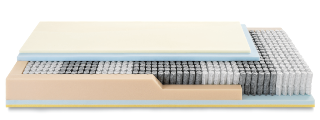Montecarlo combines elegance and sleep technology in a solid and comfortable structure, 28 cm high. Handcrafted binding provides elegance and stability. The upper profile in Memory and EcoLympha® guarantees comfort and relief at pressure points. Inside, 2,000 independent micro-springs in 7 zones ensure responsive and differentiated support. The reinforced perimeter structure prevents sagging, while the eco-friendly foam base promotes breathability.