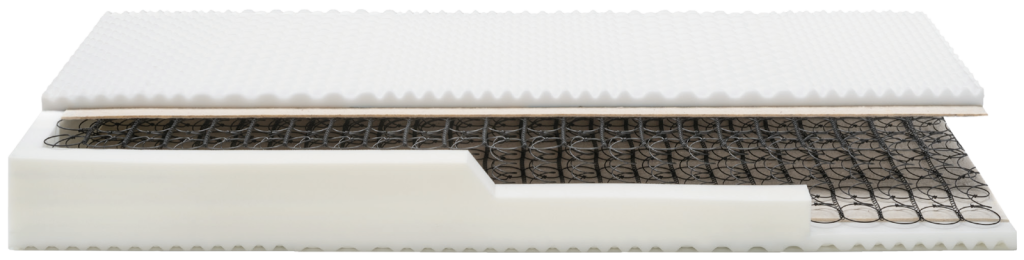The embossed memory foam profile gently cradles the body, offering personalised comfort, while the Evocell profile promotes breathability.