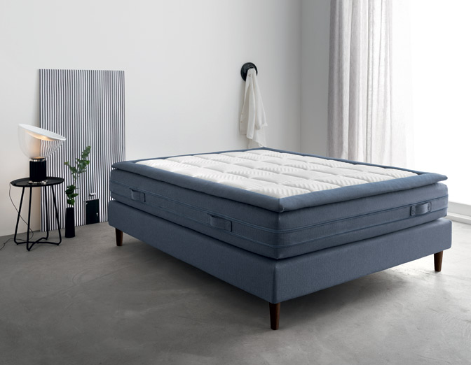 Ennerev è partner del progetto per la zona letto: il materasso Fjord, nel grintoso blu denim della collezione Hybrido, con base e topper in tinta, accoglierà gli ospiti del bed&show con un comfort unico e un design ricercato.