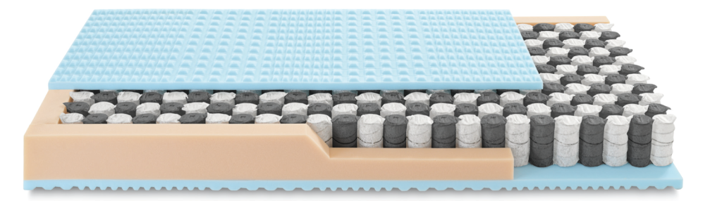 Sinergy è dotato di 800 molle indipendenti con 400 molle interne supplementari, per un sostegno progressivo e personalizzato in base alla pressione esercitata.