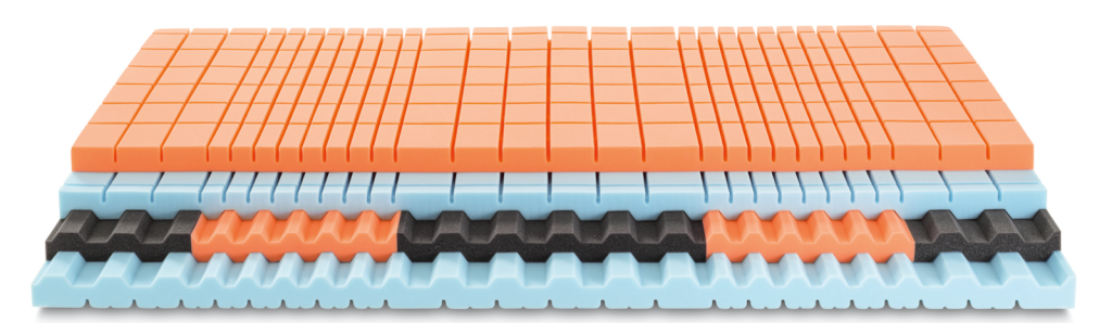 Fisiocare Pro è un materasso a 4 strati in schiume evolute, studiato per offrire supporto ergonomico, comfort progressivo e traspirazione ottimale. I primi due strati in Evocell, sagomati e a spessori differenziati, garantiscono accoglienza graduale e risposta mirata. Il nucleo canalizzato a 5 zone, in schiume ecologiche di diversa densità, favorisce l’allineamento della colonna. La base in Evocell sagomato assicura stabilità e un sostegno più deciso.